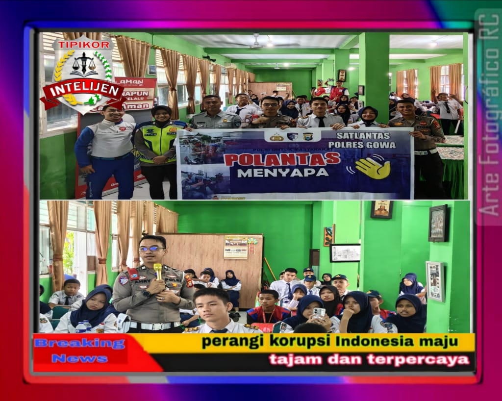 INTELIJEN TIPIKOR. MY. ID .Personel Unit Keamanan dan Keselamatan (Kamsel) Satuan Lalu Lintas Polres Gowa melaksanakan kegiatan Sosialisasi Tertib Berlalu Lintas dan Electronic Traffic Law Enforcement (ETLE) melalui program Police Goes To School kepada siswa-siswi SMP Negeri 2 Sungguminasa, Kabupaten Gowa, Selasa (27/1/2026).