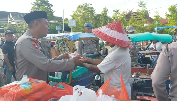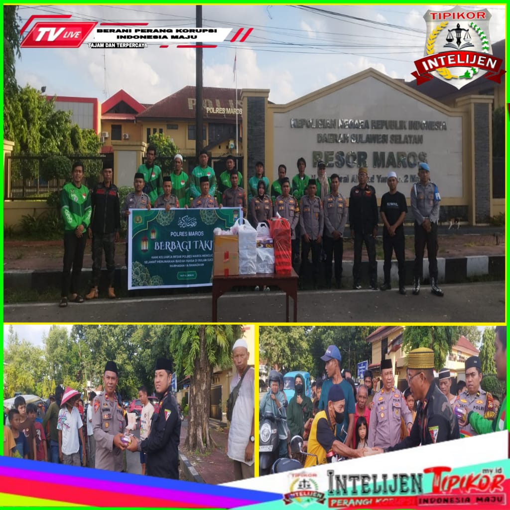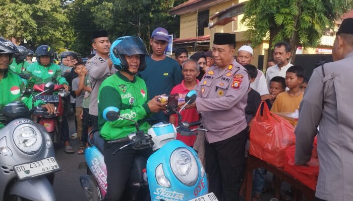 Maros – Dalam rangka berbagi berkah di bulan suci Ramadan, Kasiwas Polres Maros AKP OS Fredi Tioky bersama KA SPKT Polres Maros Mahmud, S.H. melaksanakan kegiatan sosial berupa pembagian takjil kepada para pengguna ojek online (ojol) di wilayah Kabupaten Maros.
