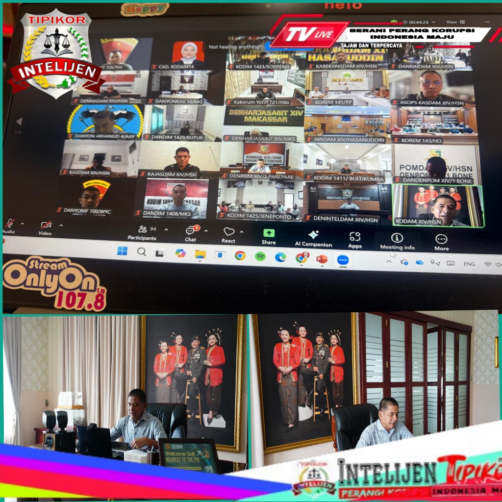 INTELIJEN TIPIKOR. MY. ID Makassar – Pangdam XIV/Hasanuddin Mayjen Bangun Nawoko memberikan pengarahan kepada seluruh Komandan Satuan (Dansat) jajaran Kodam XIV/Hasanuddin tentang kesiapan satuan dalam pengamanan Hari Libur Idul Fitri 2026 di wilayah Provinsi Sulawesi Selatan dan Sulawesi Tenggara, melalui Video Conference (Vicon), bertempat di Rumah Jabatan (Rujab) Pangdam, Jl. Sungai Tangka, Kota Makassar. Minggu, (1/3/2026).