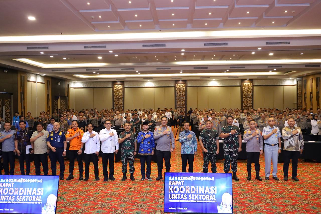 Dalam sambutannya, Kapolda Sulsel menyampaikan bahwa rapat koordinasi lintas sektoral ini dilaksanakan sebagai tindak lanjut dari hasil rapat koordinasi tingkat pusat bersama kementerian dan lembaga terkait, guna memastikan kesiapan pengamanan dalam menghadapi perayaan Hari Raya Idul Fitri 1447 Hijriah.