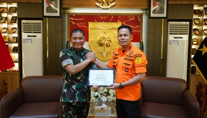 intelijenTipiko r. my.id Makassar – Pangdam XIV/Hasanuddin Mayjen TNI Bangun Nawoko menerima Piagam Penghargaan dari Kepala Badan Nasional Pencarian dan Pertolongan (Kabasarnas) RI Marsekal Madya TNI Mohammad Syafii atas dukungan yang diberikan pada operasi SAR Kecelakaan Pesawat ATR 42-500 di kawasan Gunung Bulusaraung. Penyerahan penghargaan berlangsung di ruang tamu Pangdam, Makodam, Jl. Urip Sumoharjo, Kota Makassar. Kamis, (5/3/2026).