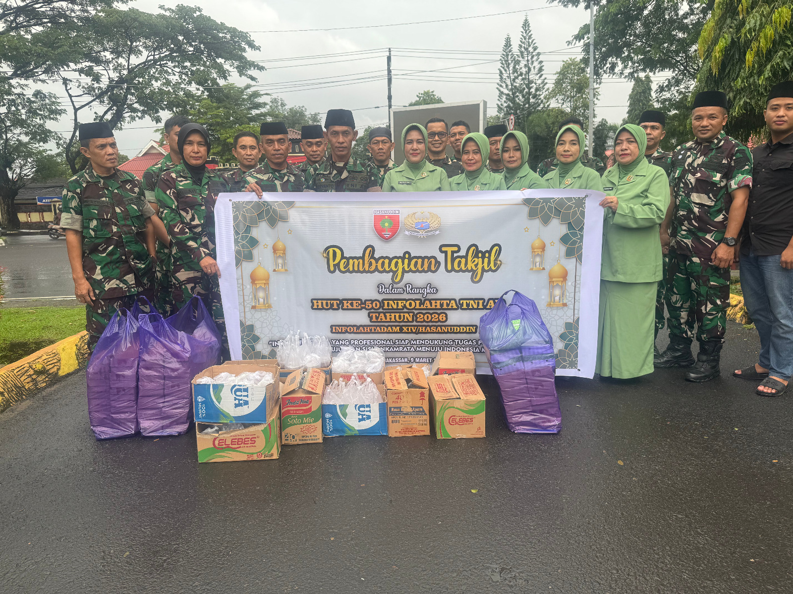 Usai pelaksanaan vicon, pada sore harinya personel bersama Persit Infolahtadam XIV/Hasanuddin melaksanakan kegiatan pembagian takjil di depan Makodam XIV/Hasanuddin, Jl. Urip Sumoharjo, Kota Makassar. Kegiatan tersebut menyasar para pengguna jalan dan masyarakat sekitar yang melintas menjelang waktu berbuka puasa sebagai wujud kepedulian sosial di bulan Ramadan.